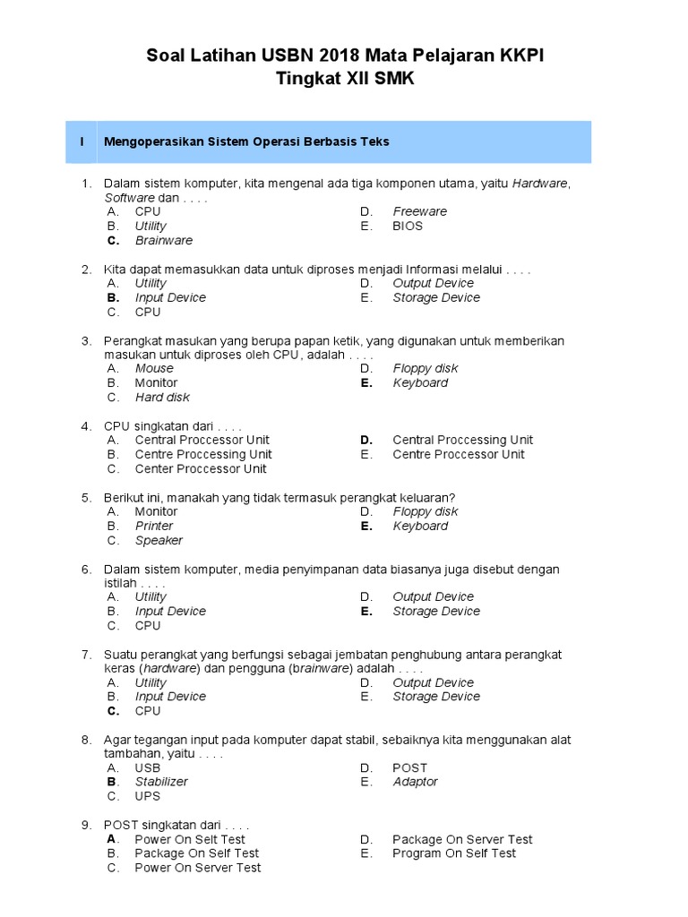 Soal Latihan Kkpi Usbn 2017.2018