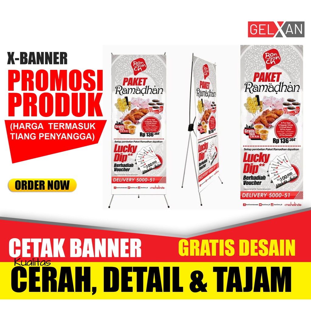 Cetak X Banner DESAIN GRATIS + STANDING Untuk PROMOSI PRODUK /ACARA KANTOR | Shopee Indonesia