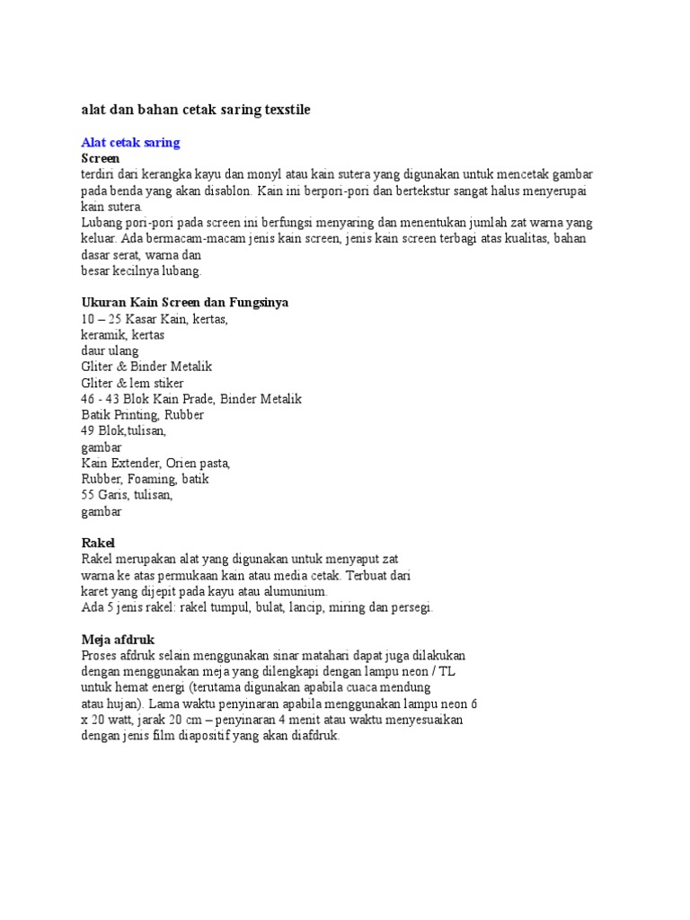 Alat Dan Bahan Cetak Saring Texstile - [DOCX Document]
