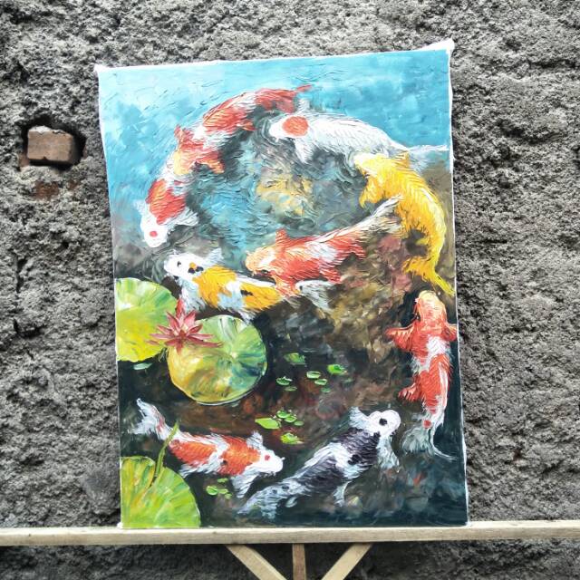 Lukisan Abstrak Ikan Koi Bentuk 9 Timbul 3d Murah 73 x 93 cm | Shopee Indonesia