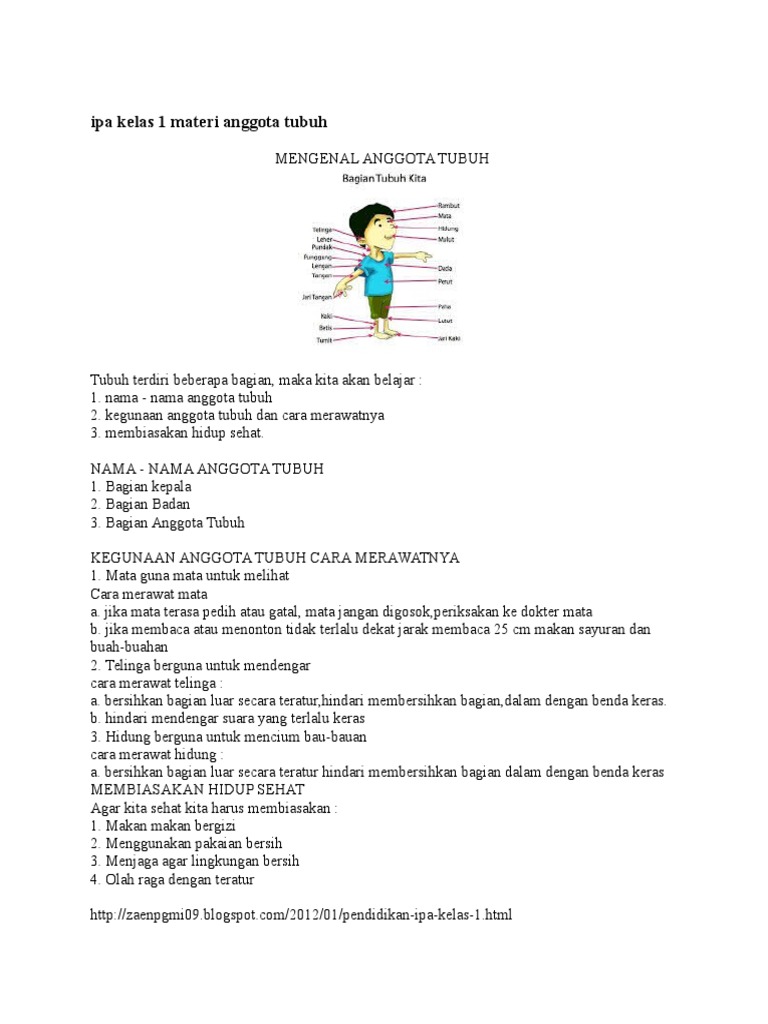 Mengenal Anggota Tubuh (Pelajaran IPA SD Kelas I)