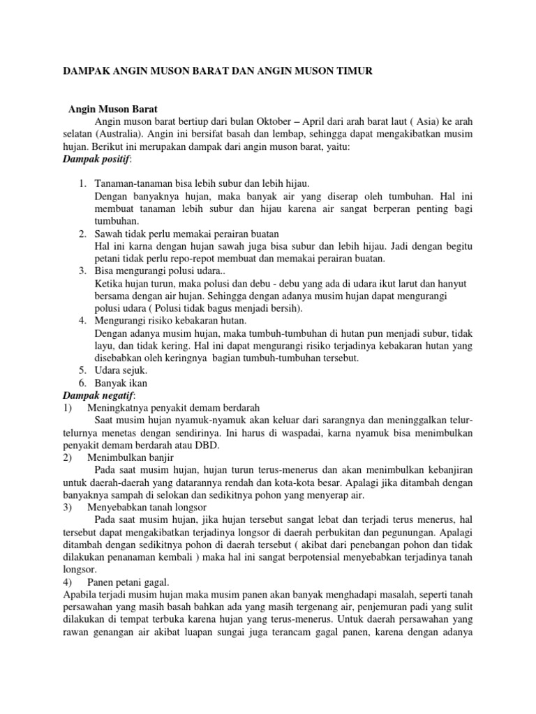 Angin Muson Barat Dan Angin Moson Timur - [DOCX Document]