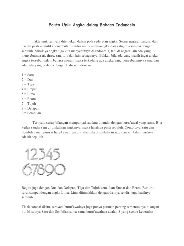 Fakta Unik Tentang Angka Dalam Bahasa Indonesia