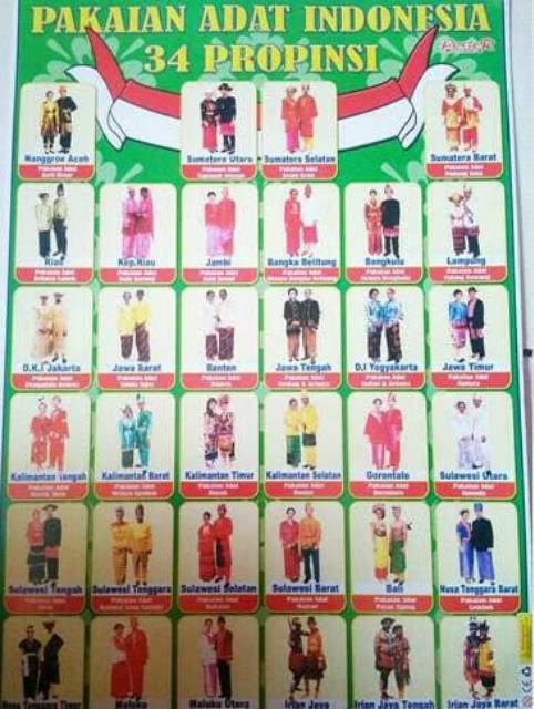 Poster PAKAIAN ADAT INDONESIA 34 PROPINSI | Shopee Indonesia