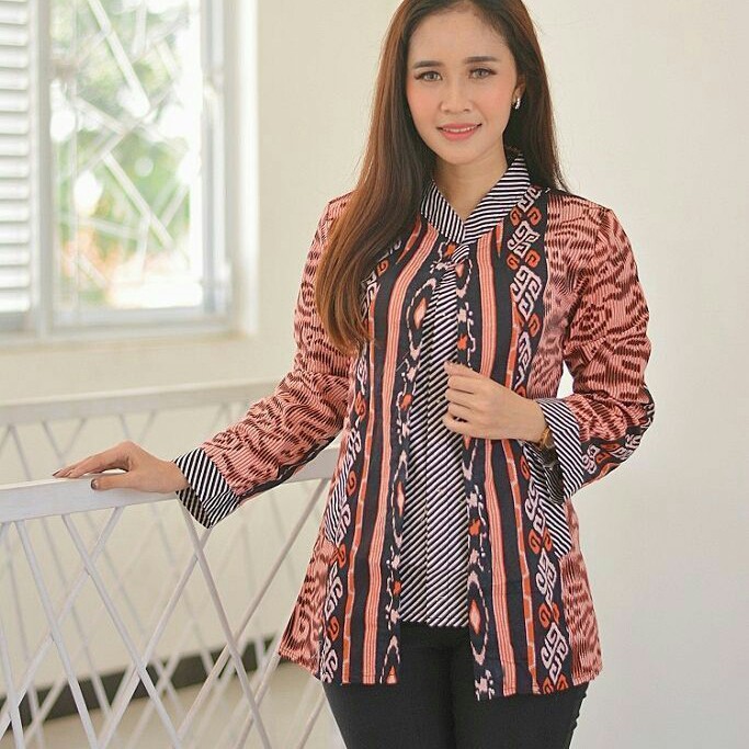 BKG22- Atasan batik modern untuk wanita lengan panjang motif garis bhn katun strecth | Shopee Indonesia