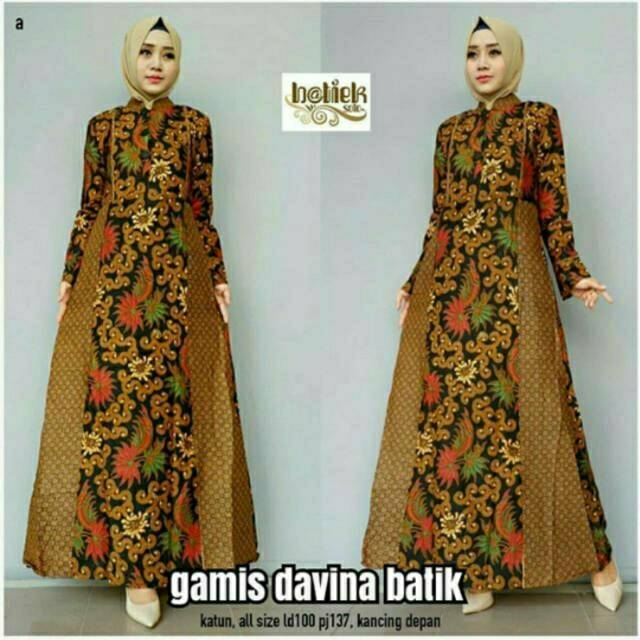 baju batik gamis davina pakaian batik wanita baju batik muslimah | Shopee Indonesia