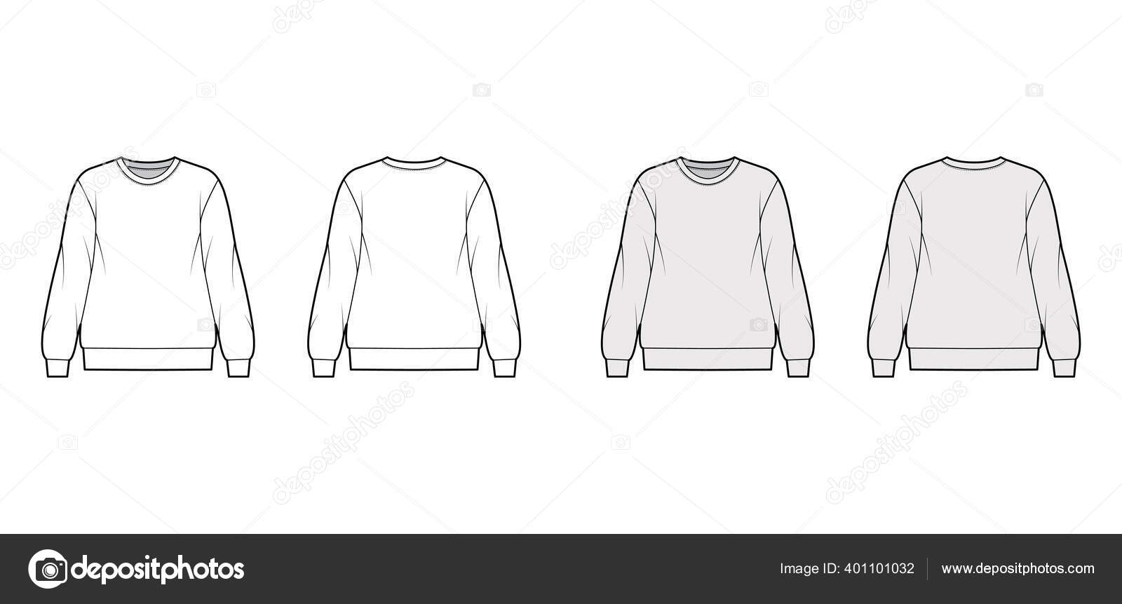 Cotton-terry sweatshirt berukuran besar gambar mode teknis dengan fit santai, leher awak, lengan panjang jumper — Stok Vektor © Katya_Golovchyn #401101032