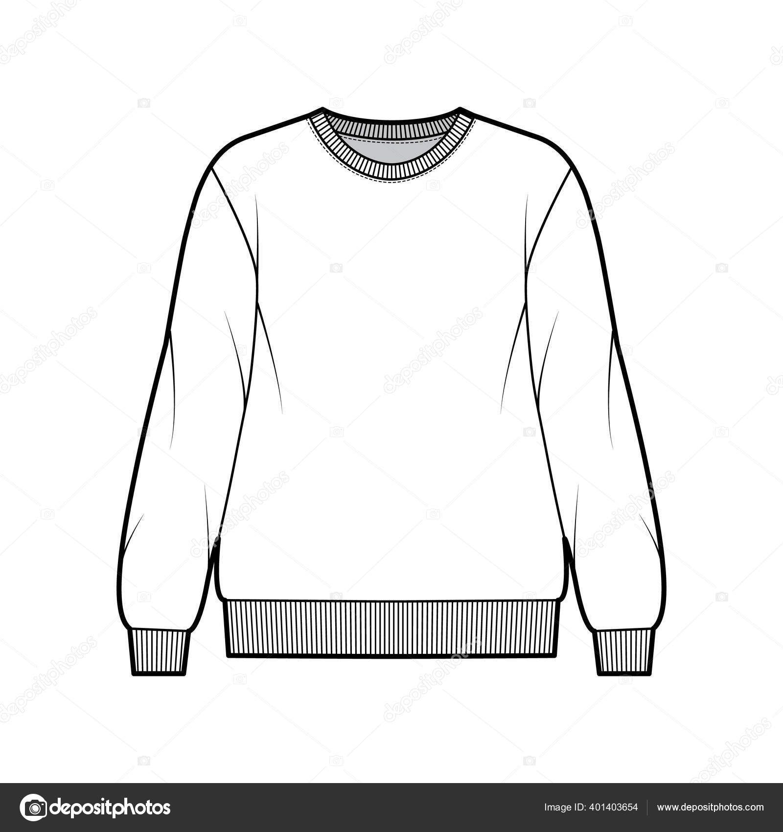 Cotton-terry sweatshirt berukuran besar gambar mode teknis dengan fit santai, leher awak, lengan panjang jumper — Stok Vektor © Katya_Golovchyn #401403654