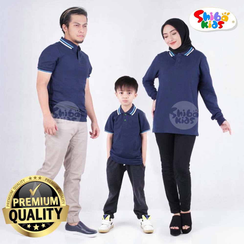 READY _ Kaos polo couple keluarga lengan panjang kualitas distro warna BIRU NAVY | Shopee Indonesia