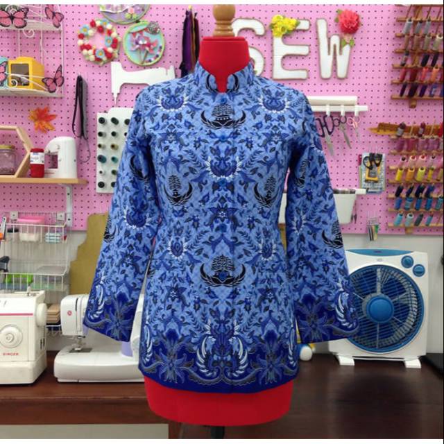 instagram Baju Korpri Wanita Biru Batik Size M L XL XXL Kain Register Resmi Full Furing Aero Dingin • Toko Sumber Rejeki Jeans Fashion