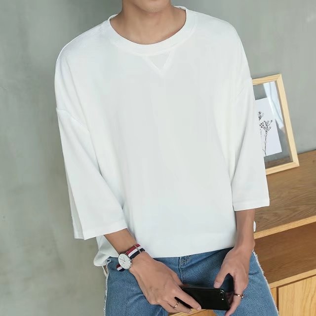 Kaos T-Shirt Pria Lengan 3/4 Model Longgar Ada Ukuran Besar | Shopee Indonesia