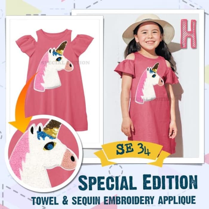 Dress Anak Baju Anak Perempuan Import SE34 Model Sabrina Warna Pink Bordir Gambar Unicorn Gr | Shopee Indonesia
