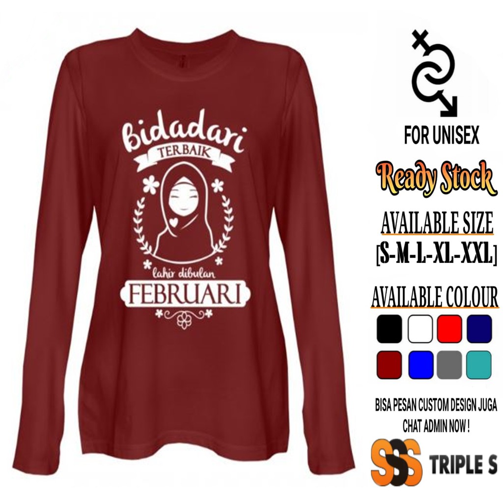 KAOS LENGAN PANJANG WANITA BERHIJAB BIDADARI TERBAIK LAHIR DI BULAN FEBRUARI SABLON PUTIH | Shopee Indonesia