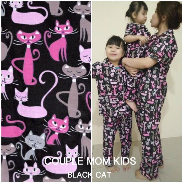 Jual Piyama Baju Tidur Couple Ibu Daster Jumbo dan Anak S sampai XL BLACK CAT Katun Jepang di lapak PRISHILLA anastascia_williana