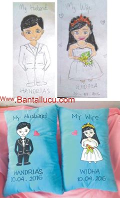 Bantal Wedding Couple Desain Sendiri - Bantal lucu | Bantal Karakter | Grosir Bantal Lucu | Bantal Lucu Unik| Bantal Souvenir