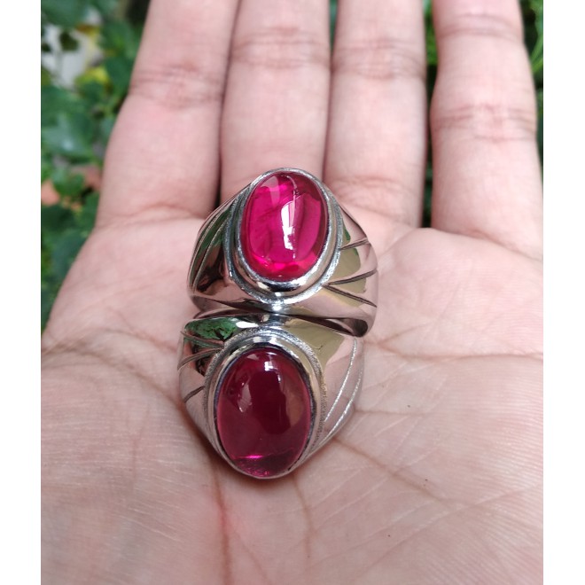 Cincin Batu Ruby merah delima Pink Merah Muda Besar Asli Kode 2049 - rumah akik
