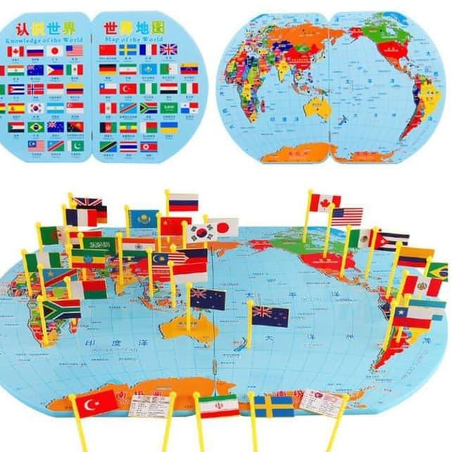Mainan Kayu Belajar Peta Dunia Dan Bendera Knowledge Of The World Terkini | Shopee Indonesia