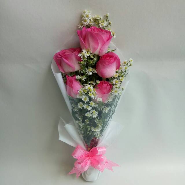 Hand bouquet bunga mawar pink soft asli buket bunga kado ulang tahun fresh flower bouquet | Shopee Indonesia