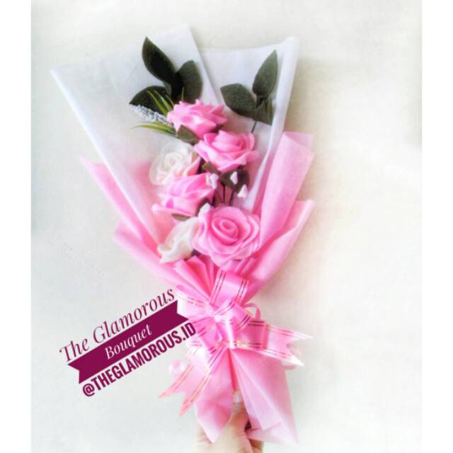 Buket Bunga Flanel Murah 4 mawar pink 2 mawar putih | Shopee Indonesia