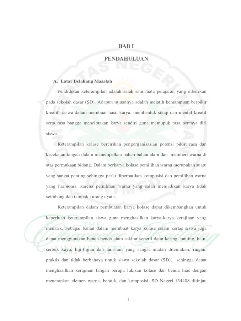 Unimed Bab I- Analisis Karya Kolase Siswa Kelas v Sd 134408 Tanjung Balai Ditinjau Dari Penerapan Harmoni Warna Dan Komposisi Mata Pelajaran Seni Budaya Keterampilan t.a 20122013