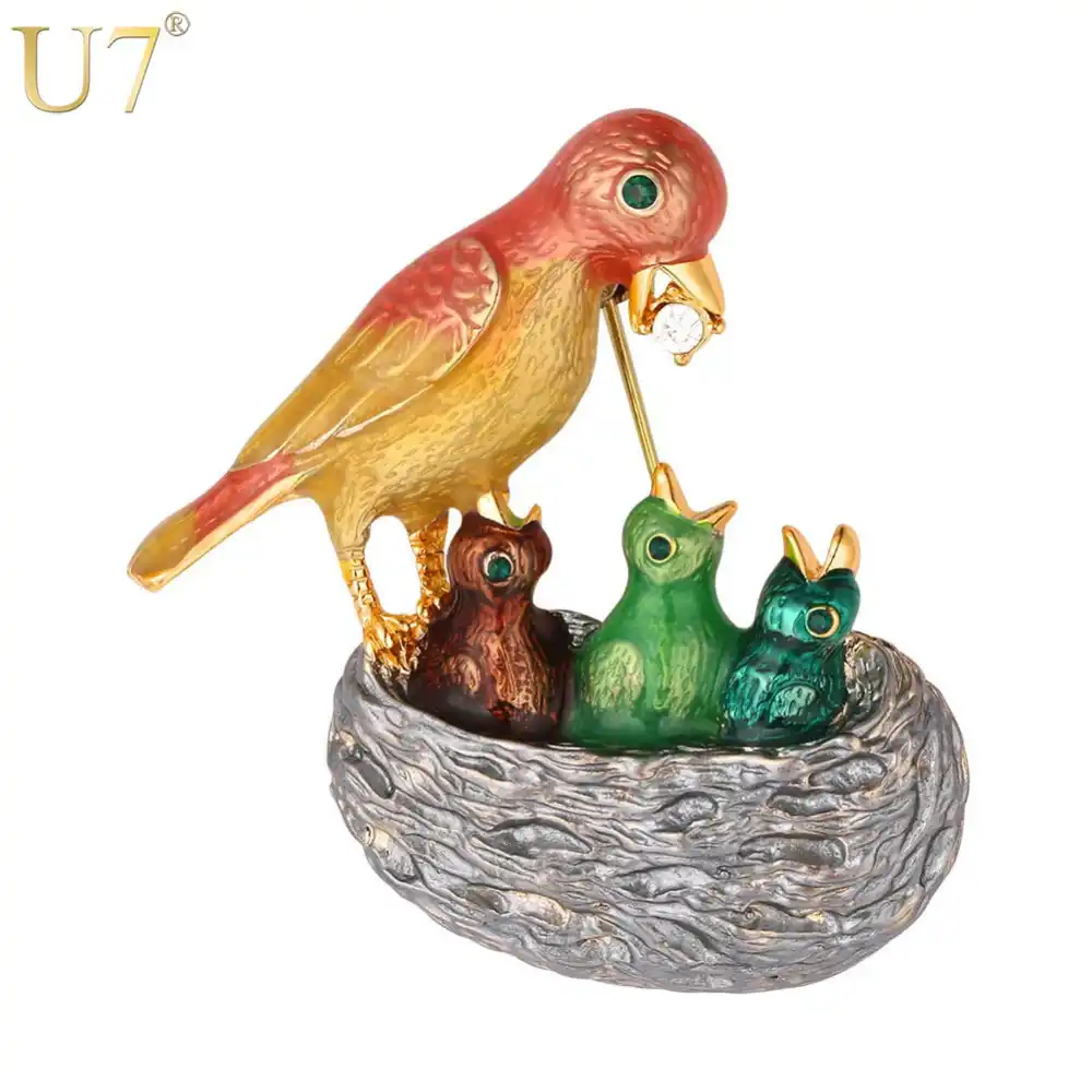 U7 Mum Burung Feed Nya Anak Pin Bros Unik Fashion Jewelry Lucu Colorful Burung Sarang Hewan Bros Wanita Hadiah B139|bros fashion|fashion broshewan bros - AliExpress