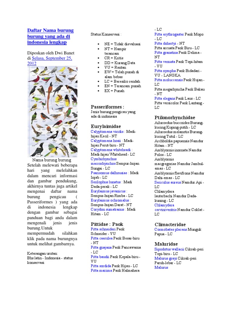 Daftar lengkap burung jenis kicauan (penyanyi – pengicau – passeriformes) Indonesia | Burung Super Kicau