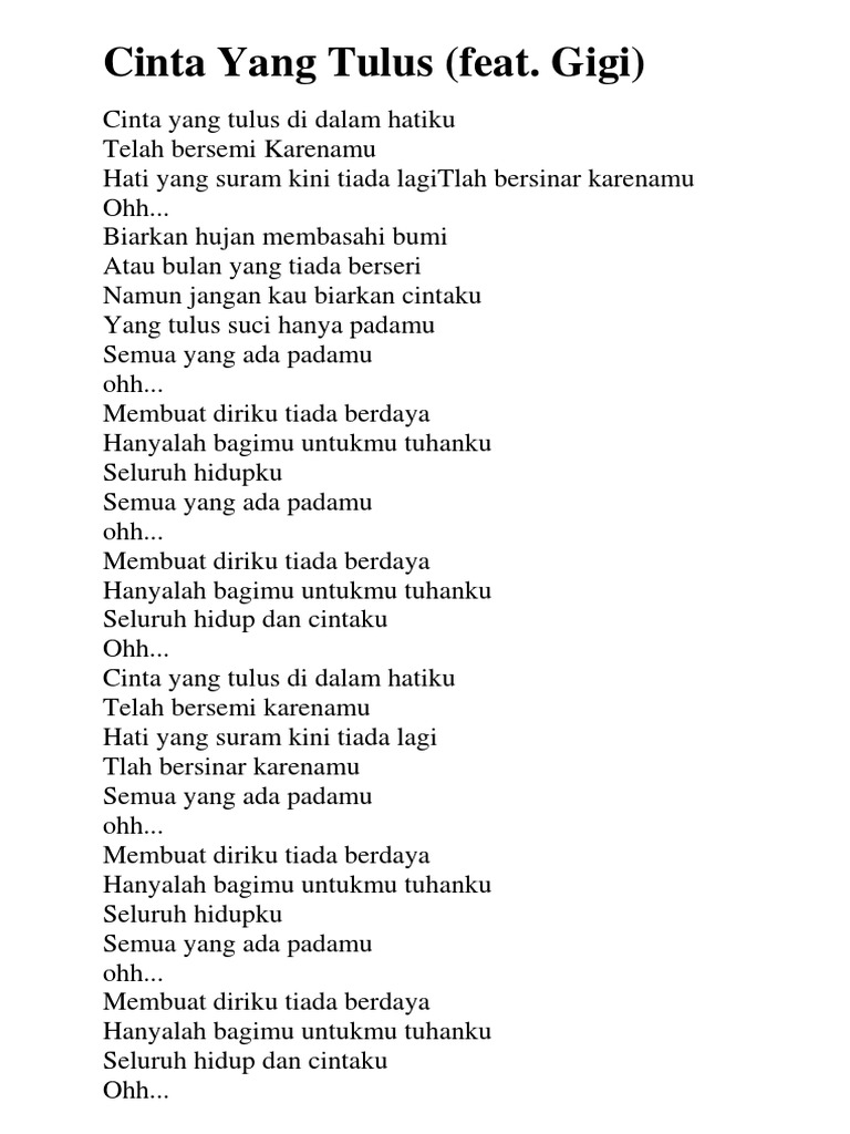 Lirik Lagu Cinta Yang Tulus