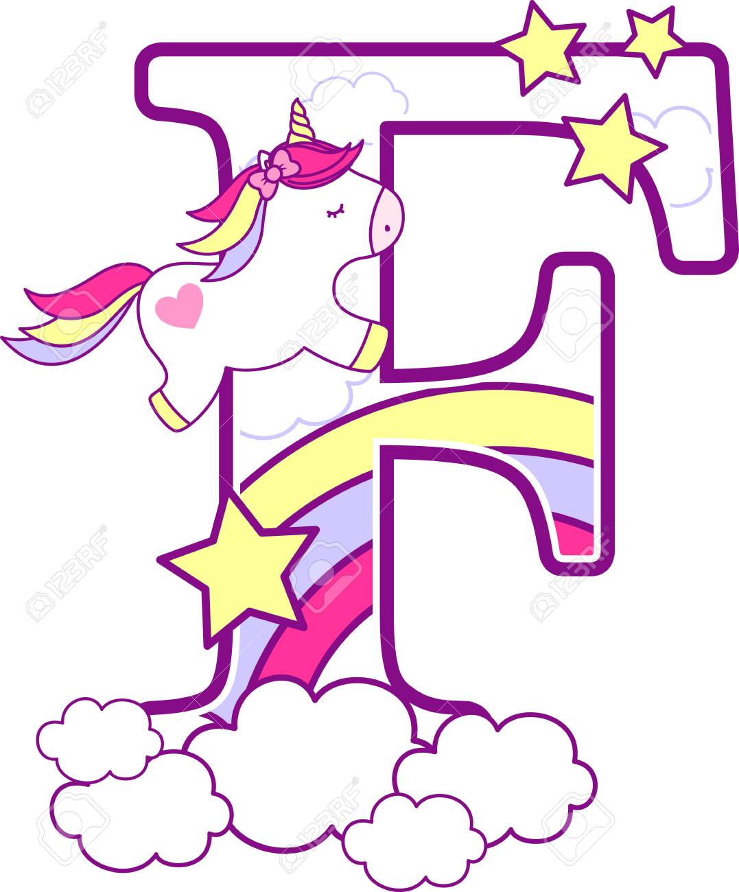 Initial F With Cute Unicorn And Rainbow. Can Be Used For Baby.. Royalty Free Cliparts, Vectors, And Stock Illustration. Image 101260912.