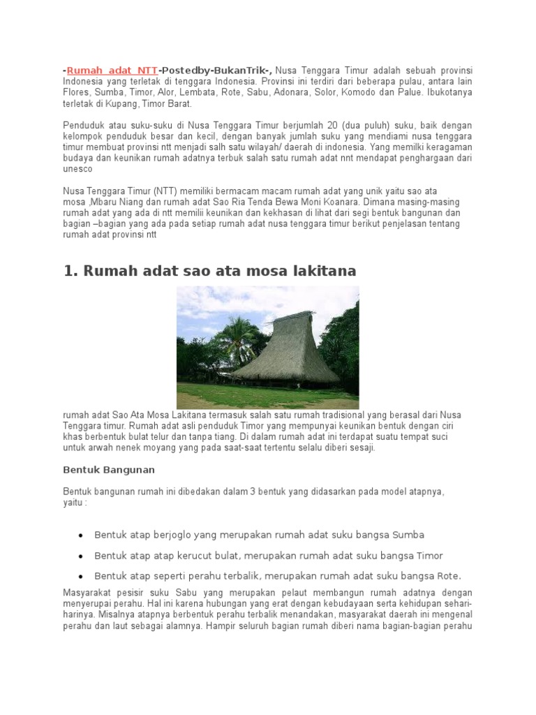 RUMAH ADAT NUSA TENGGARA TIMUR (NTT) -… - MediaInfo Terkini | Facebook