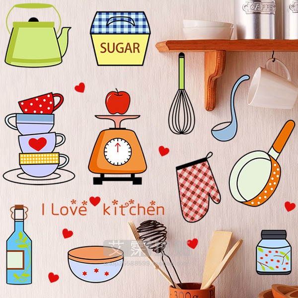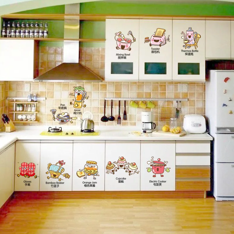 Adorable Animated Foods and Cooking Utensils Homey Kitchen Decor Decorative Wall Stickers Films|wall sticker|decorative wall stickersdecoration wall - AliExpress