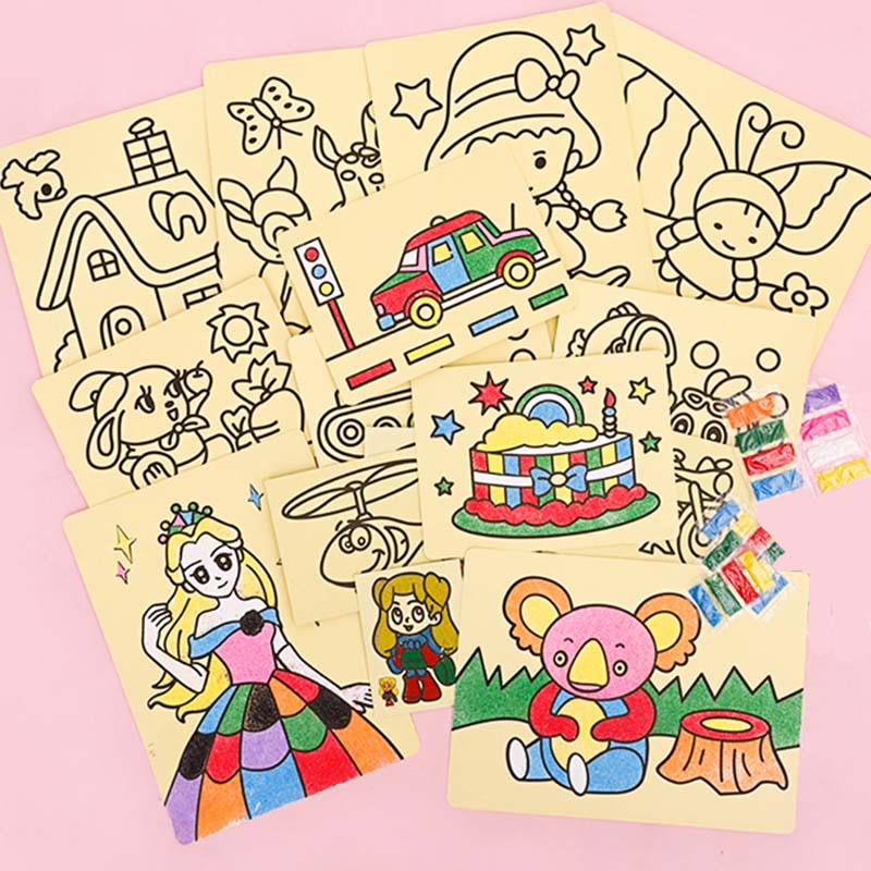 10Set/Lot Mainan Edukasi Mewarnai Lukisan Pasir Berwarna / Sand Painting Ukuran 9x11Cm | Shopee Indonesia