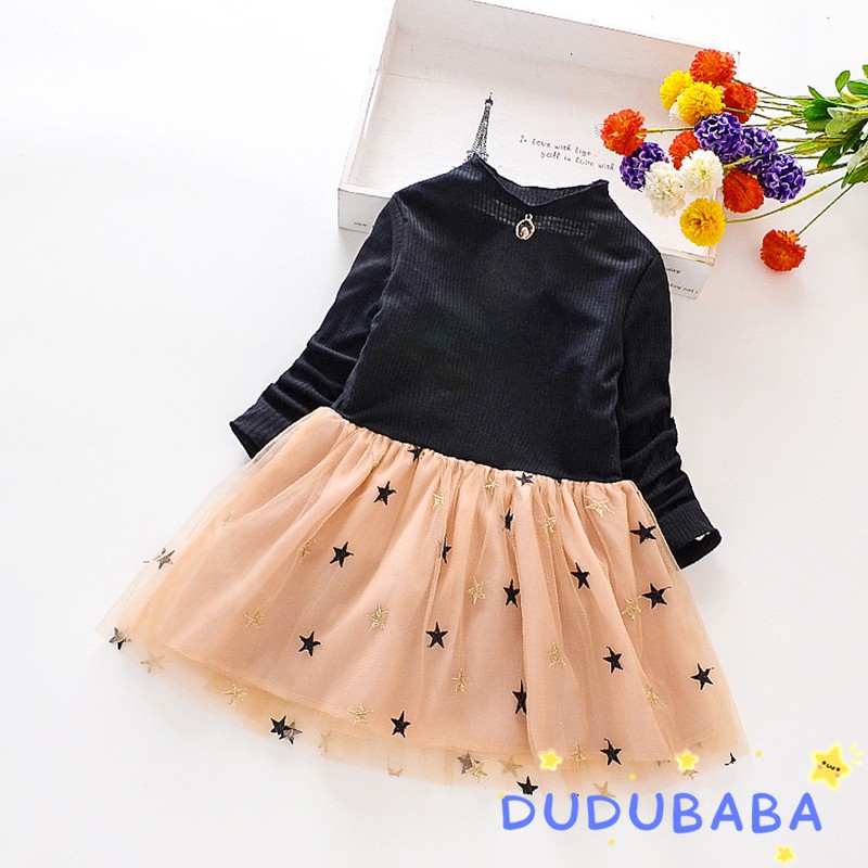 Gaun Casual Lengan Panjang dengan Bahan Katun dan Hiasan Desain Patchwork untuk Anak Perempuan | Shopee Indonesia