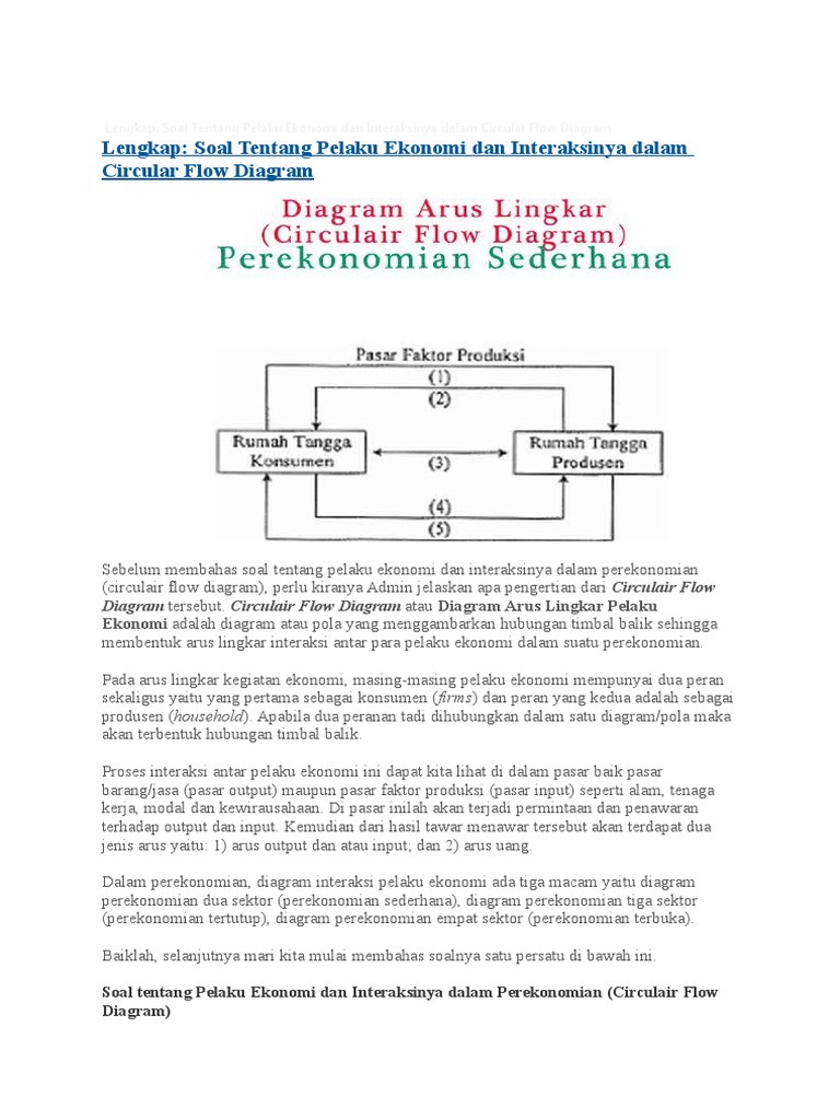 Lengkap: Soal Tentang Pelaku Ekonomi dan Interaksinya dalam Circular Flow Diagram
