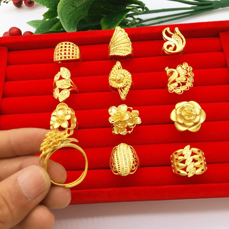 Asli pasir emas murni Vietnam perhiasan kuningan terbuka, 24 k tahan lama, 999 simulasi cincin emas | Shopee Indonesia