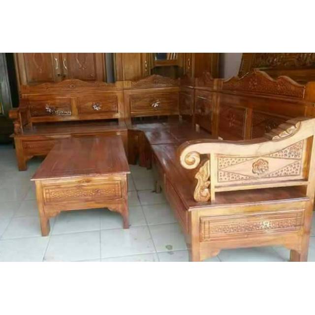 Kursi tamu sudut bagong blok jati jepara | Shopee Indonesia