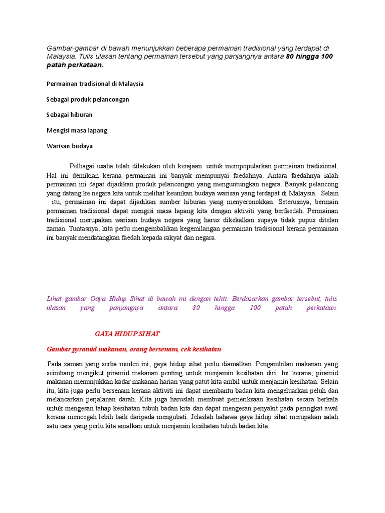 A. Gambar-gambar di bawah menunjukkan beberapa permainan tradisional yang terdapat di Malaysia. Tulis ulasan tentang permainan tersebut yang panjangnya antara 50 hingga 80 patah perkataan