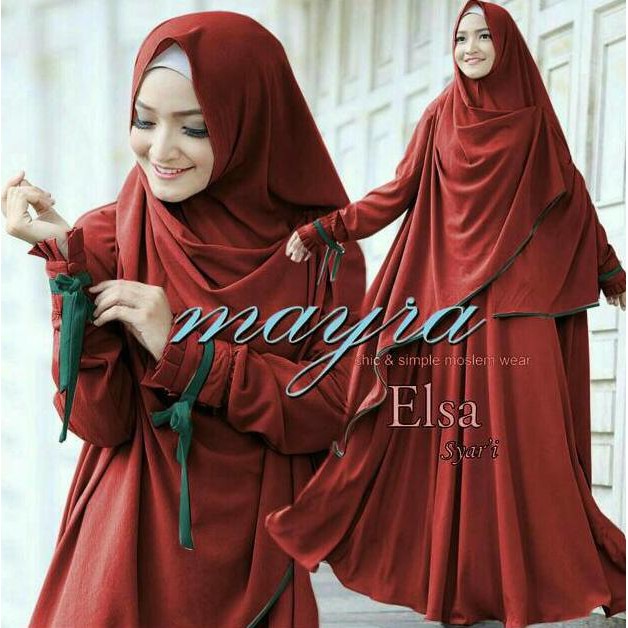 Gamis Batik Syari Bergo Elsa Mayra Maroon Gamis Brokat Terbaru 2017 | Shopee Indonesia