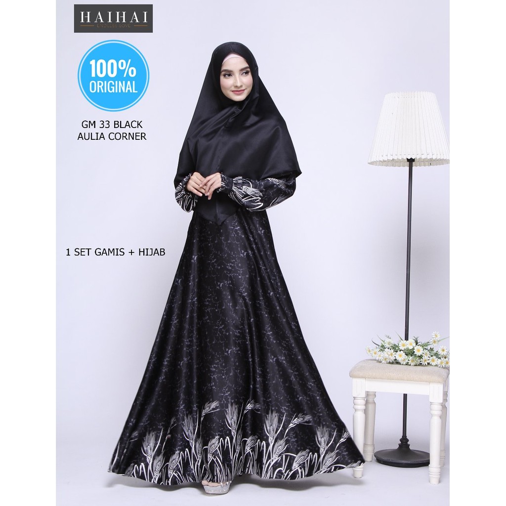 Gambar Gamis Syari Terbaru 2018 Gamis HaiHai GM 33 Black ORIGINAL Model Trendi | Shopee Indonesia