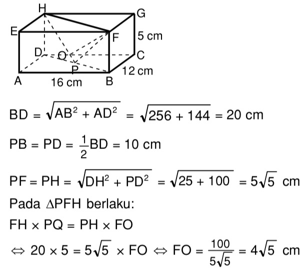Titik P terletak di tengah diagonal BD. Tentukan jarak antara titik F dan garis PH! - Mas Dayat