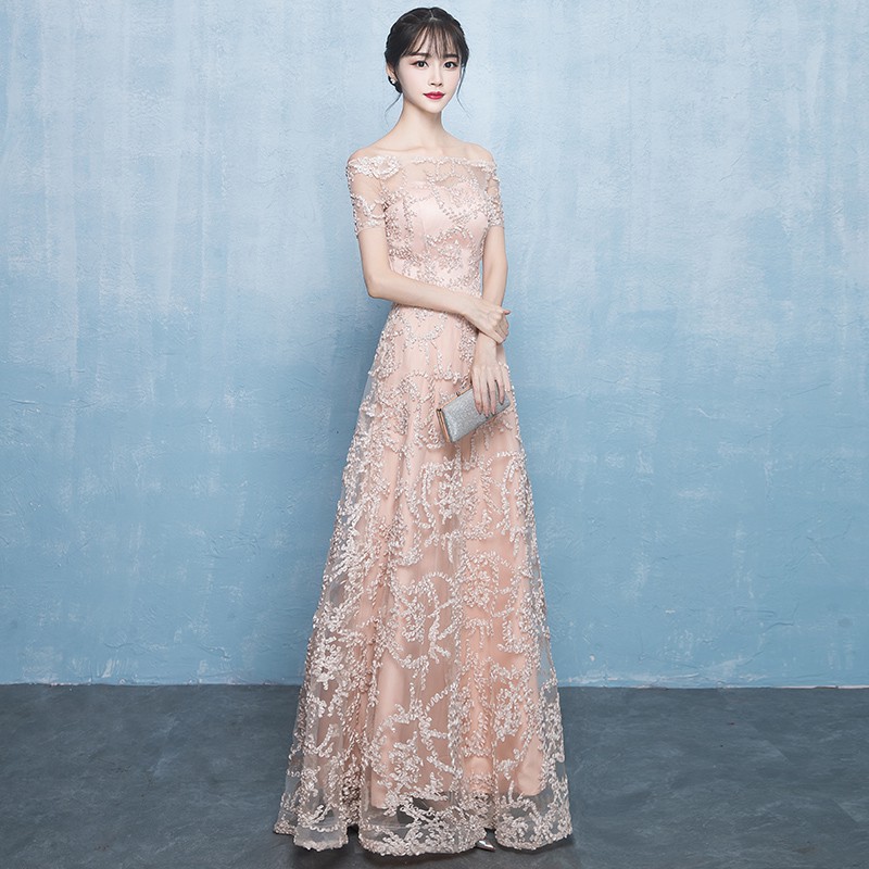 Gaun Pengiring Pengantin Panjang Korea Pink Slim Evening Maxi Dresses Gaun Pesta Wanita | Shopee Indonesia