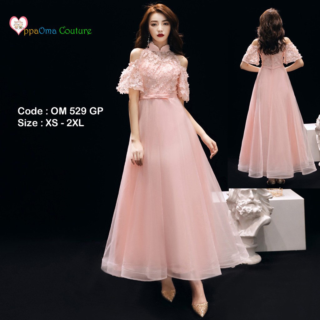 Gaun pesta panjang pink corak bunga cantik elegan OM 529 GP | Shopee Indonesia