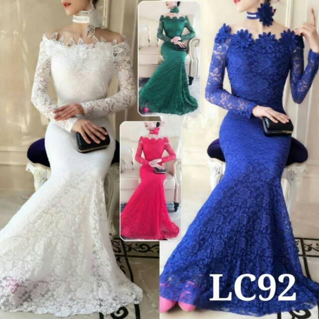 Gaun pesta panjang MEWAH LC92 Dress brukat lengan panjang impor | Shopee Indonesia