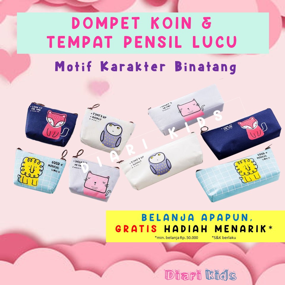 Tempat Pensil dan Dompet Koin Mini Motif Gambar Kartun Binatang Hewan Lucu | Shopee Indonesia