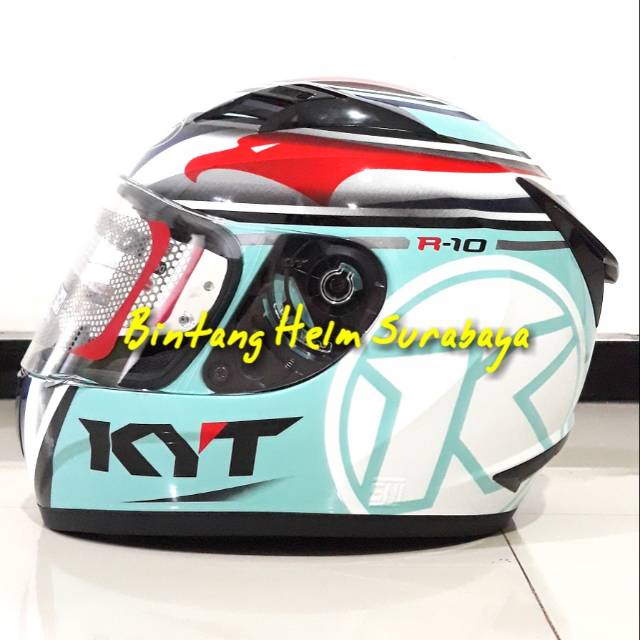 Helm KYT R10 #1 Aqua Blue/white - Flat Visor - Full face - KYT R10 Aqua Marine | Lazada Indonesia
