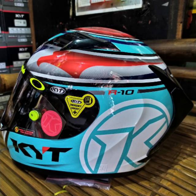 Jual Helm KYT R10 FLAT VISOR Edt 1 Aqua Blue Dark Visor Helm Full Face | BLANJA.com
