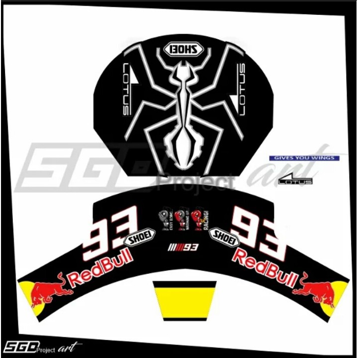 STICKER DECAL HELM MARC MARQUEZ MM93 BLACK ANT REDBULL UNIVERSALL FULLFACE | Shopee Indonesia