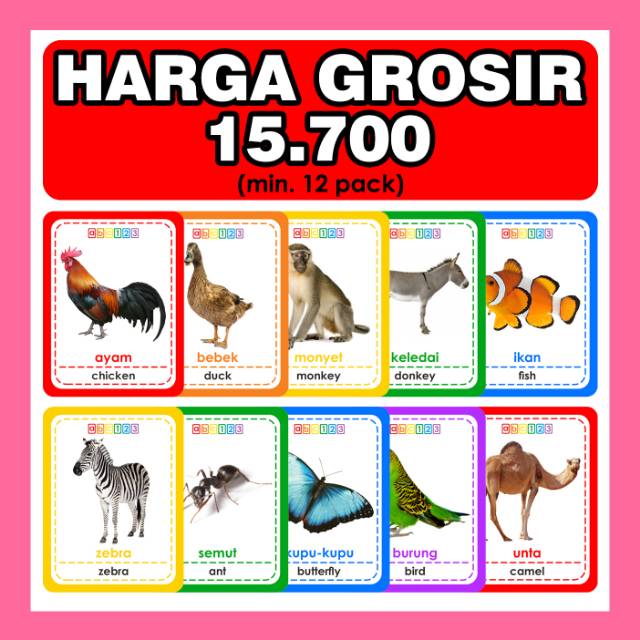 1KG =12 PACK Flashcard Binatang Darat Air Udara . Kartu Pintar Belajar Hewan Animal Flash Card Bayi | Shopee Indonesia