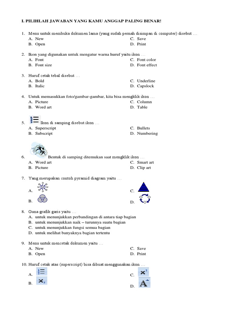 I. Pilihlah Jawaban Yang Kamu Anggap Paling Benar!