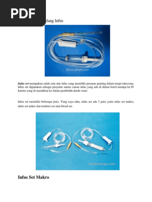 Infus set / Transet A. Deskripsi Infus Set adalah alat yang digunakan oleh petugas medis untuk melakukan pemasangan infus. Infus