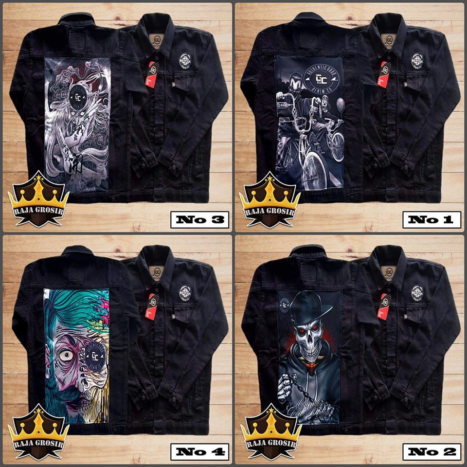 Jaket Jeans Printing Hitam Gambar Jaket Jeans Hitam GC Pria Jaket Hitam Cowok Gambar ( 1 KG MUAT 2 ) | Shopee Indonesia